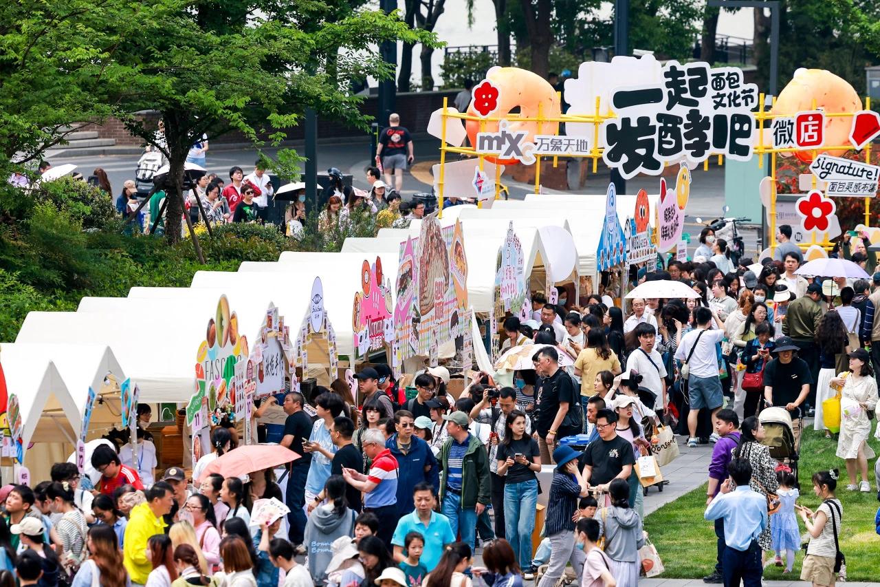 市中心“网红”商场上海苏河湾万象天地,一场“一起发酵吧.面包文化市集”登陆西里L1慎余里广场,汇聚超70+特色面包品牌,“面包脑袋”足不出“沪”就能一站吃遍全国。此次“五一”假期客流创新高,仅假日首日客流就突破10万人次,假日期间持续迎来客流高峰。